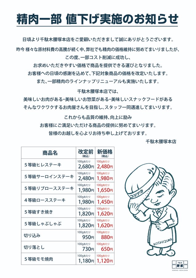 昨今 様々な原材料費の高騰が続く中、弊社でも精肉の価格維持に努めてまいりましたが、この度一部コスト削減に成功し、お求めいただきやすい価格で商品を提供できる運びとなりました。
